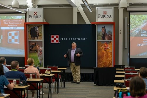 Each summer, the Midwest Association of State Departments of Agriculture gathers in the home state of the current chair for a regional meeting. This year, Missouri Agriculture Director Chris Chinn gathered the group in Chesterfield, Missouri, June 24 and 26. During this regional meeting, Land O’Lakes’ Purina Animal Nutrition Center welcomed the attendees to Gray Summit, Missouri, to showcase their pioneering research facility.